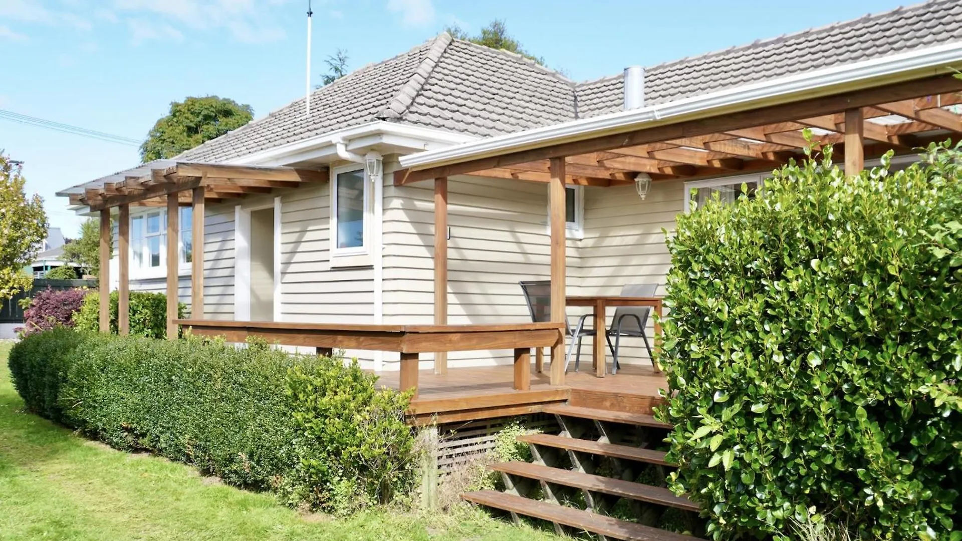 Los huéspedes tienen a su disposición un comedor al aire libre y una zona de comedor con servicio de tetera/cafetera. La cocina también dispone de hervidor eléctrico, nevera y cristalería. Situada a tan solo 10 minutos a pie de esta villa, la estación de autobuses Te Ngae Rd - Fronting No 488 ofrece opciones de transporte en las inmediaciones.